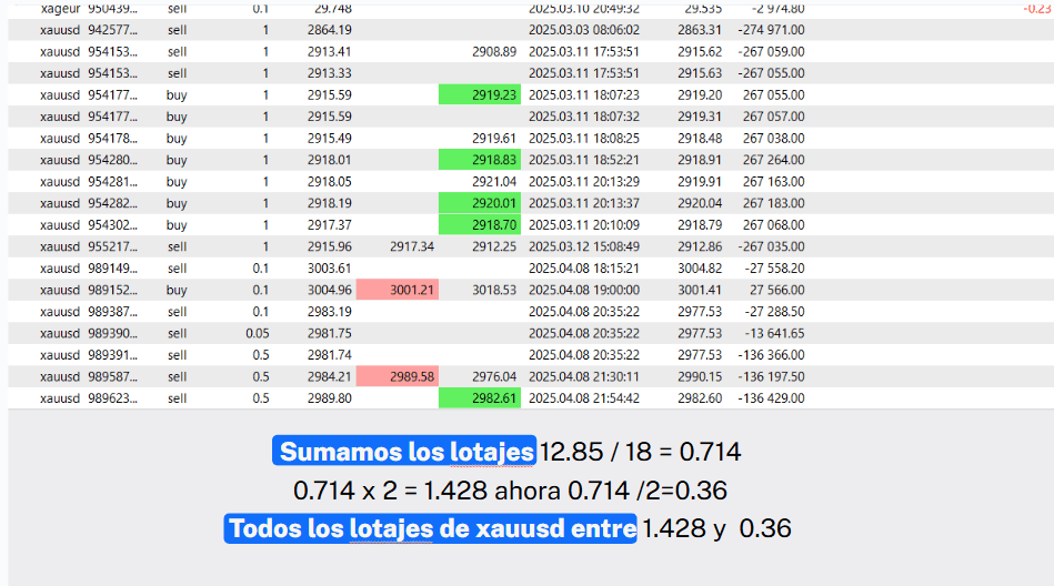 Por eso, en Noctorial analizamos el promedio de operaciones que haces con cada símbolo (por ejemplo, EURUSD o XAUUSD) y el tamaño medio de tus lotes.