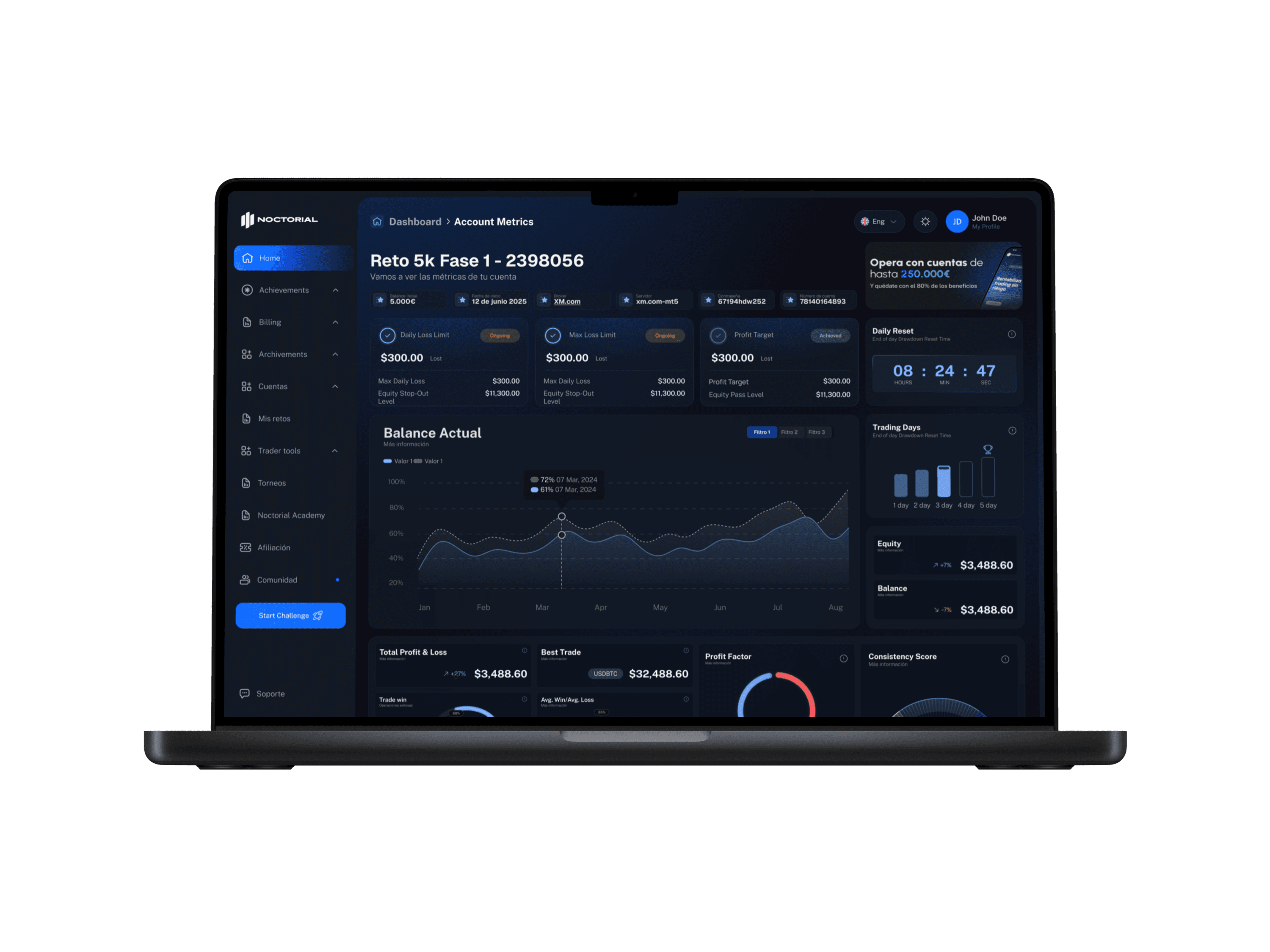 Aumenta tu límite de pérdida máxima hasta el 10%, dándote más libertad para operar y ajustar tus estrategias.