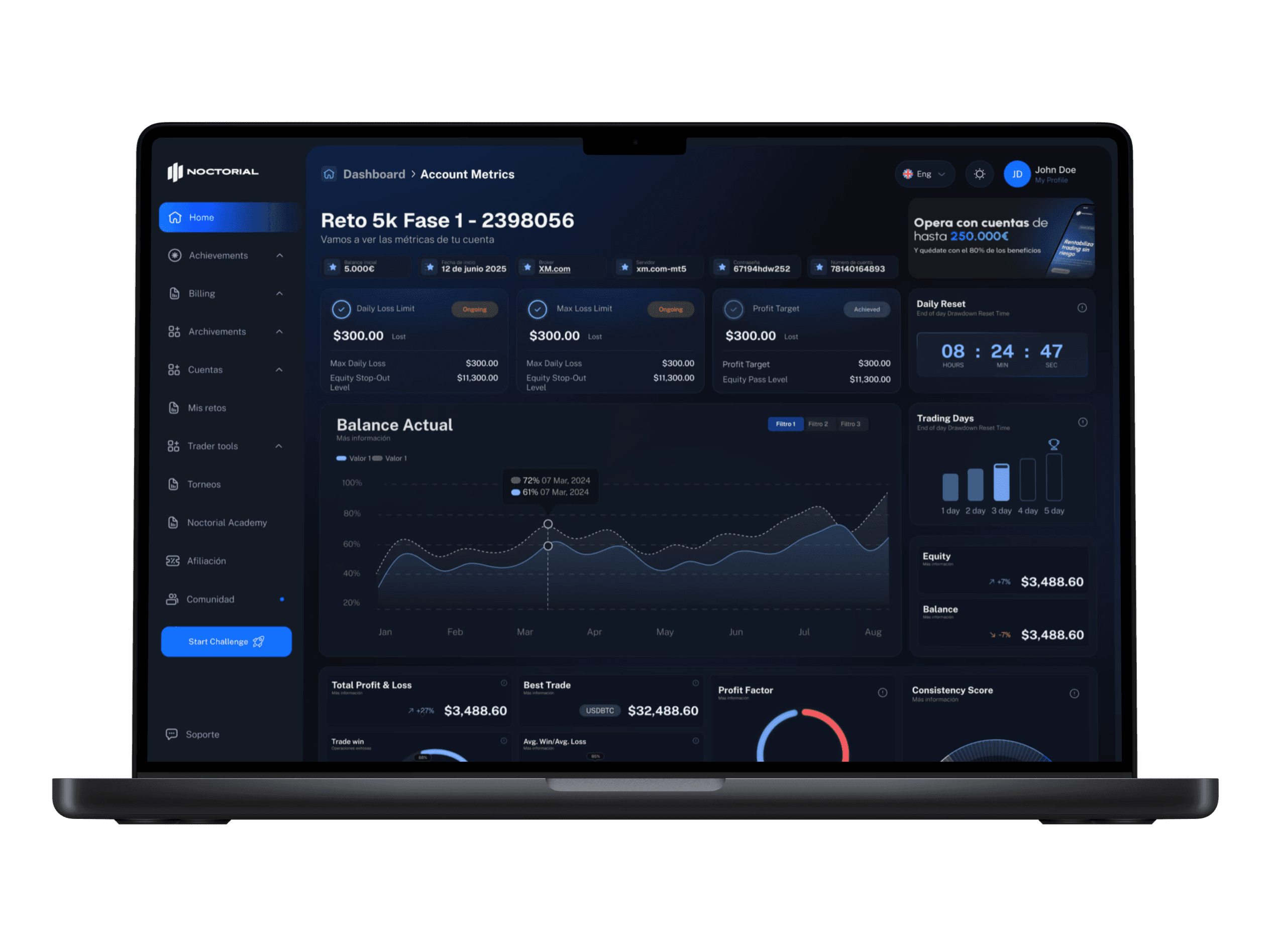 En Noctorial no buscamos traders que arriesgan todo en una operación. Buscamos traders rentables y consistentes. Por eso nuestras normas están diseñadas para ayudarte a desarrollar una estrategia sostenible, proteger tu cuenta y maximizar tus probabilidades de éxito a largo plazo.